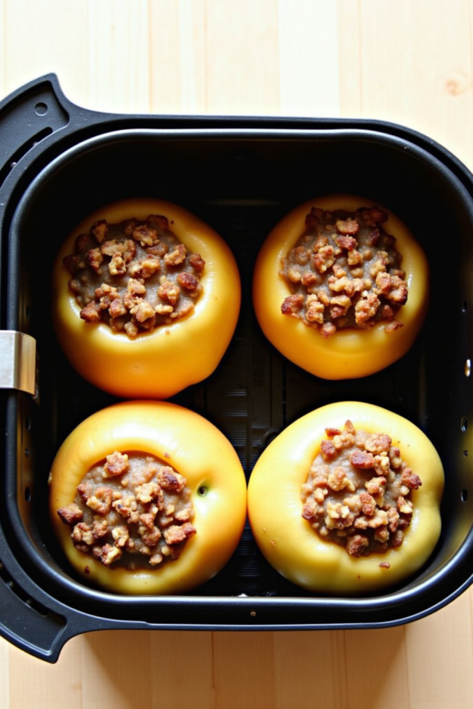 5. Arrange the stuffed apples in the air fryer basket, ensuring a bit of space between each for even cooking.