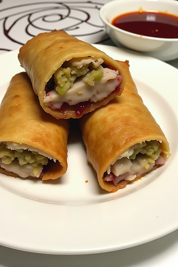 The beauty of this egg roll filling is its versatility. Layer a little turkey, a spoonful of stuffing, some mashed potatoes, and a dab of cranberry sauce onto each wrapper. For added creaminess, throw in some shredded cheese or a dollop of gravy. Mix and match based on what’s in your fridge—these rolls are designed for flexibility and fun!
